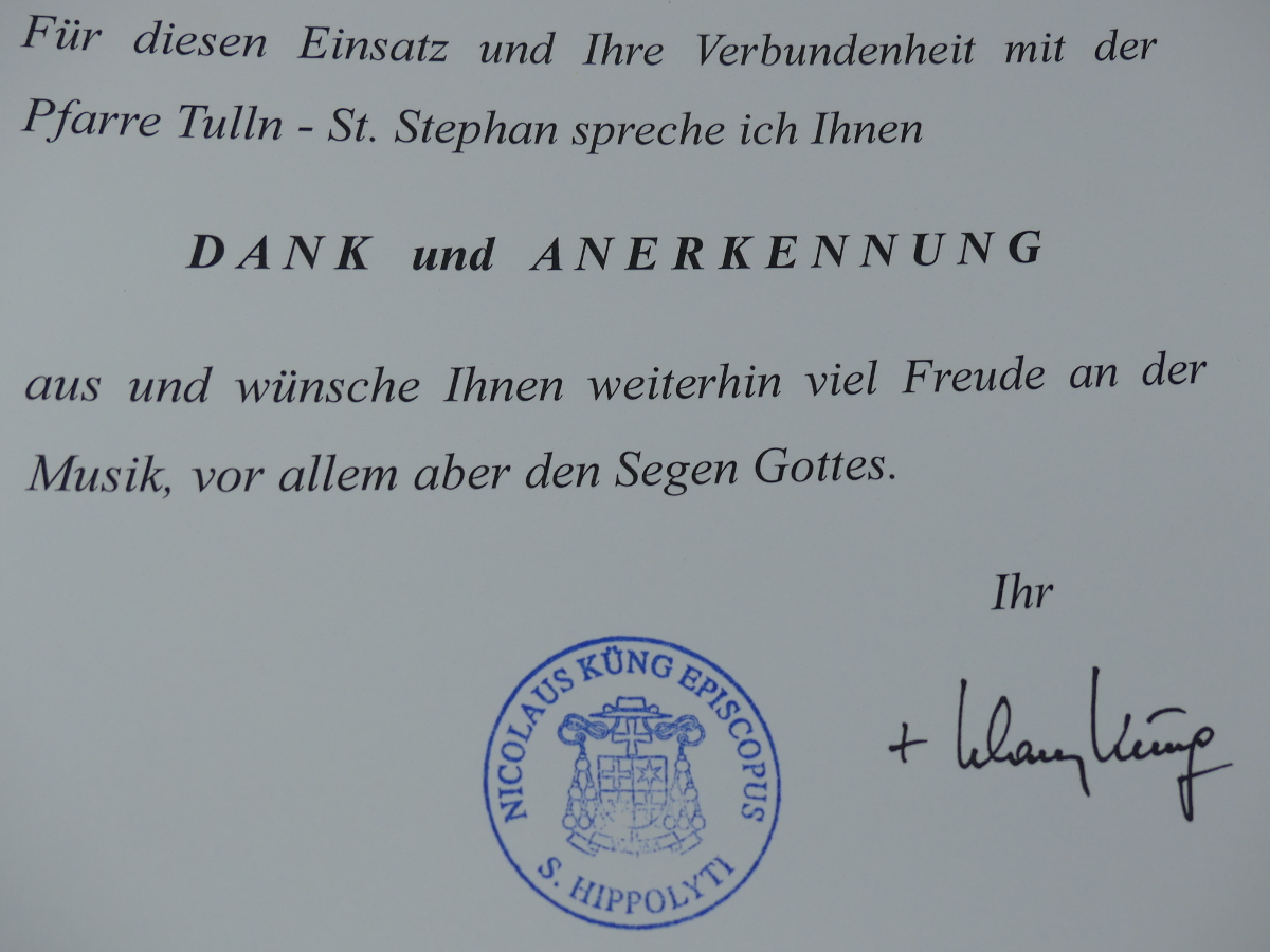 herzlichen Dank für Euer großes Engagement und die hervorragende Umsetzung des Projektes „Ohrwürmer aus Film & Musical“ mit der 4b der Volksschule Neulengbach. Unser Sohn Julian war von den Vorbereitungen und der damit verbundenen Einstudierung der aufzuführenden Stücke ganz hingerissen. Eine kurzfristig besorgte DVD der Aristocats unterstützte dieses Vorhaben auch bei uns zu Hause und die ganze Familie hatte schon im Vorfeld bis zu der Veranstaltung am 20. November 2013 viel Spaß und Freude dabei. „Katzen brauchen furchtbar viel Musik“ tönte es aus dem Wohnzimmer, „Ich wär so gern wie Du“ aus dem Badezimmer und der Zauberspruch „Bibbidi Babbidi Bu“ wird uns sicher noch einige Zeit begleiten. Hier wurde durch Eure Arbeit mit den Kindern wieder einmal deutlich bewiesen welche inspirierende Kraft in der Musik liegt, wie diese ein wichtiges verbindendes Element darstellt und für allgemeine Begeisterung bei sämtlichen Beteiligten gesorgt hat. Ein nochmaliges „B-R-A-V-O“ und die besten Wünsche für zukünftige Projekte dieser Art senden herzlichst