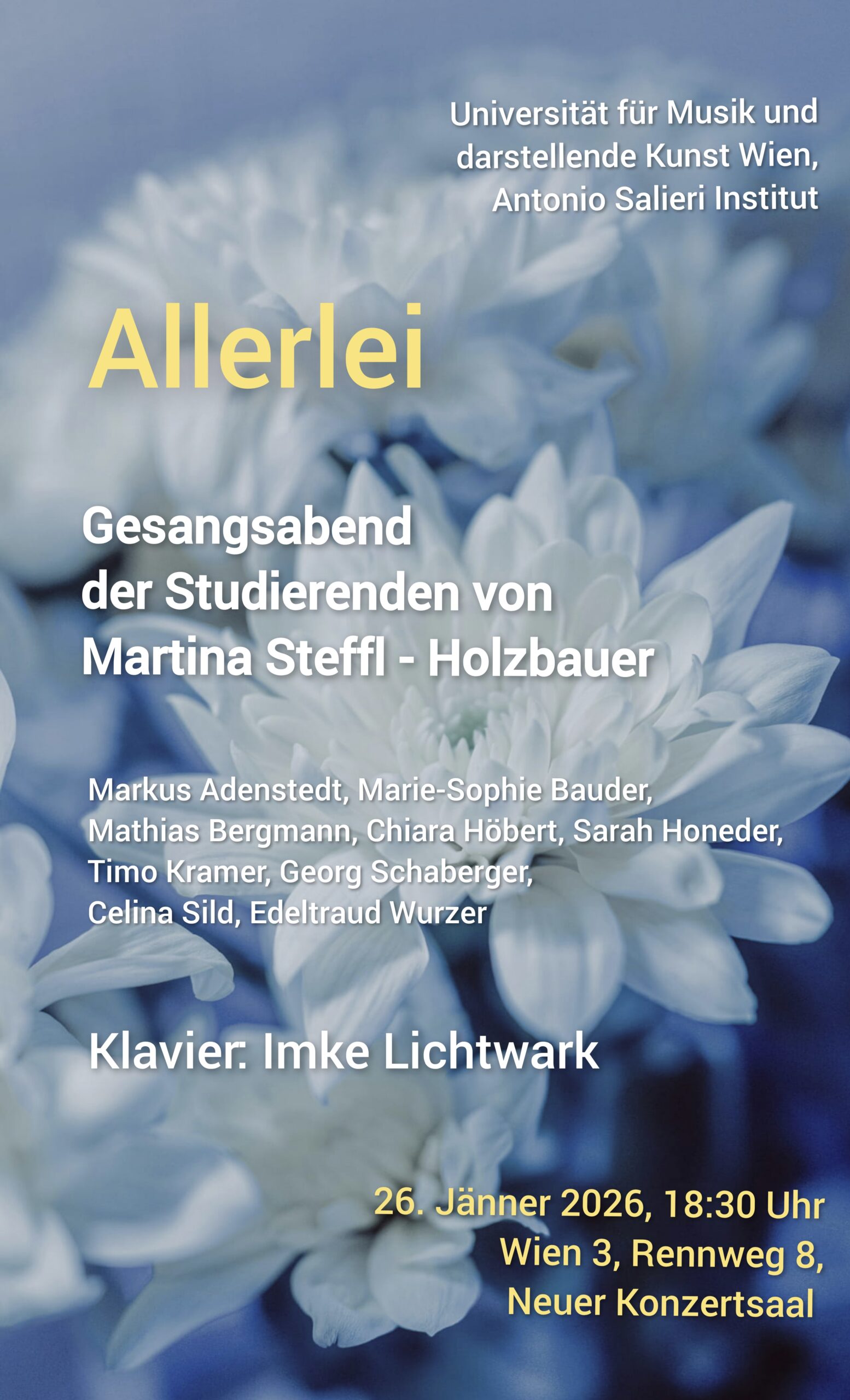 Universität für Musik und darstellende Kunst Wien - Neuer KonzertsaalGesangsabend der Studierenden von Martina Steffl-Holzbauer Klavier: Imke Lichtwark